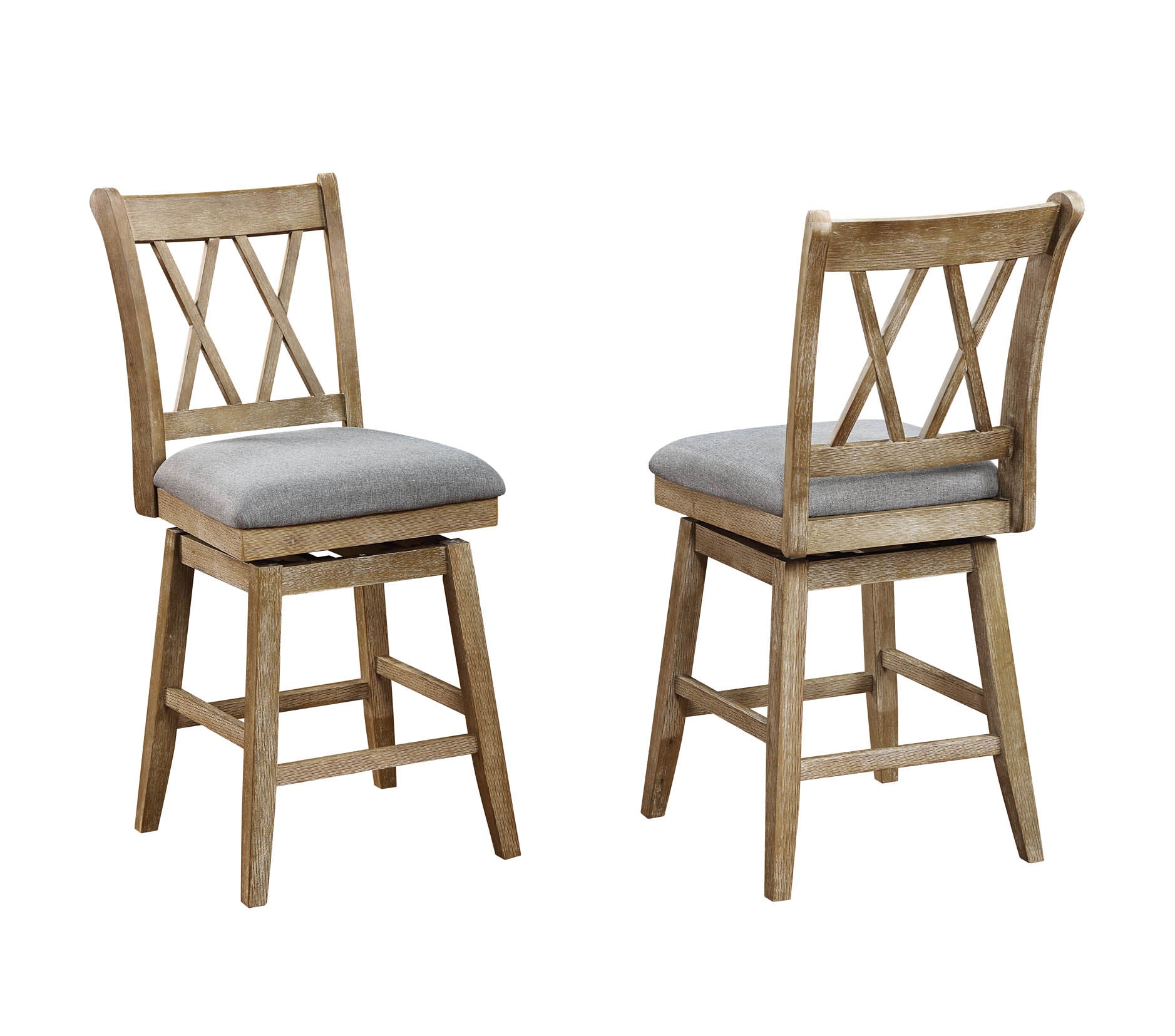 Enhance your dining or entertaining space with the Swivel Pub Chairs by Vilo Home. These elegantly crafted chairs feature a rustic wood finish, comfortable upholstered seats, and a unique swivel function for added convenience and style. Perfect for pairing with your counter height table or as standalone seating, these chairs offer both comfort and sophistication.
